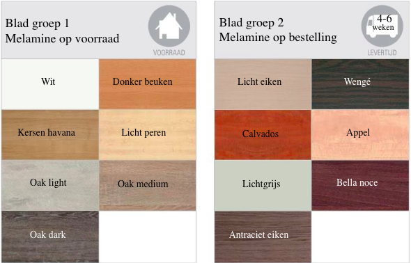 Prijzen in tabel: voor vaste hoogte, HI (hoogte instelbaar: + €50)