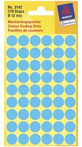 Avery ronde etiketten blauw, Ø 12 mm, pak van 270 etik.