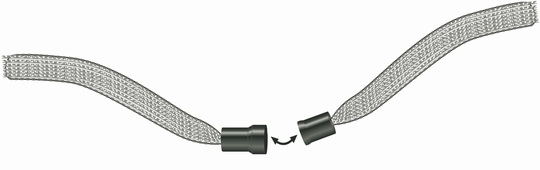 • Het naambordje van hoogtransparante hardfolie wordt aan een 10 mm brede textielband met veiligheidssluiting bevestigd