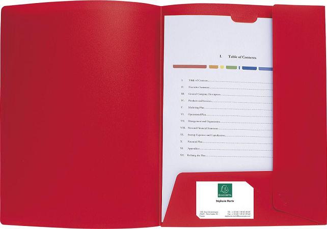 Personalisatie: kristallen hoes op de voorzijde van de map. Deze laat u toe om uw dossiers te personaliseren. Tevens heeft u de mogelijkheid om uw visitekaart toe te voegen, in de daarvoor voorziene gleuven onderaan de map.