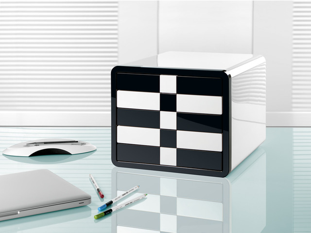 De iBox-serie is een innovatieve bureau-accessoireserie die zich kenmerkt door een elegant design. Stijlvol met hoogglanzende afwerking. Deze serie combineert perfect de vraag naar een mooi design met functioneel gebruik. Strakke lijnen voor het moderne kantoor. De iBox Innovatieve ladenkast voor op het bureau. Tijdloos, eigenzinnig en elegant vormgegeven. De ladenkast bevat 5 laden tot formaat C4, De ladehoogte is 40mm. Inclusief beschrijfbare labels. Vervaardigd van hoogwaardig kunststof met hooglanzende afwerking.
