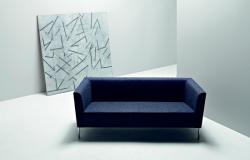 Een collectie met een sofa, kleine fauteuil en barkruk gekenmerkt door een sobere en evenwichtige design. Optimale comfort voor elk soort gebruik.