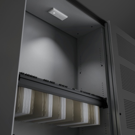 De kasten Slide&Go zijn voorzien van geluidsabsorberende akoestische foam in de schuifdeuren. Plaatst u de kasten vrij in de ruimte? Maak dan gebruik van onze speciale akoestische achterpanelen.
