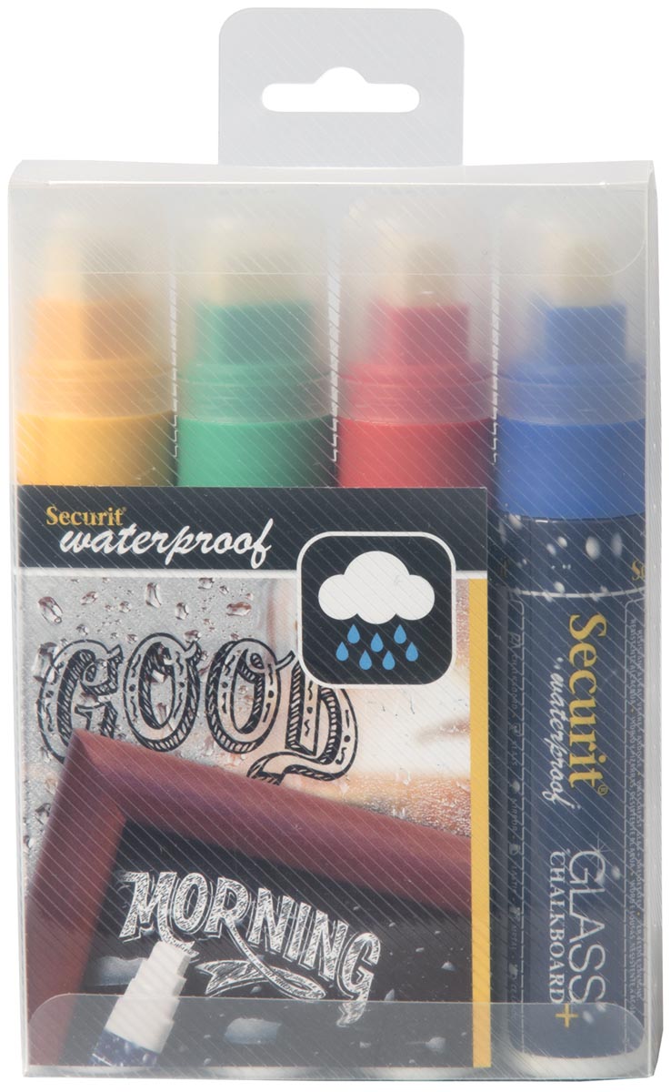 Securit Waterproof krijtmarker large - etui met 4 stuks in geassorteerde kleuren