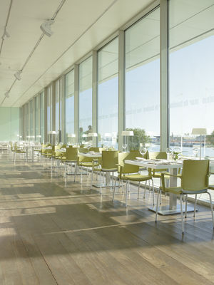 Fraaie en multifunctionele 4-poots stoel met chromen frame en rugsupport. De rug, zitting en armleggers zijn uitgevoerd in dezelfde kleur (100% recycleerbaar PP). Uit voorraad leverbaar in 6 kleuren. Overige mogelijkheden (bv. met gestoffeerd zitkussen) leverbaar op bestelling.