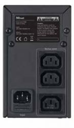 Compacte, betrouwbare 1.000 VA UPS-voedingsbescherming met 3 uitgangen met overspanningsbeveiliging. Zorgt ervoor dat uw pc blijft functioneren wanneer de stroom uitvalt. Compact formaat en batterijcapaciteit van 1.000 VA die voldoende is voor een zelfstandige PC. 20.000 euro garantie op aangesloten apparatuur (raadpleeg de voorwaarden op trust.com). Uitgangen met overspanningsbeveiliging en AVR-functie om aangesloten apparaten te beschermen tegen schade als gevolg van overspanning, stroompieken en schommelingen. Duidelijke optische en akoestische indicatoren voor voedingsbron en bijna lege batterij. Bescherming tegen overbelasting en kortsluiting. Inclusief Recupel: € 0,04