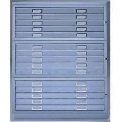 Bisley tekeningkasten zijn flexibel in te richten en zorgen voor een veilige opslag van uw grotere documenten. Tekeningkasten zijn leverbaar in secties van 5 laden zowel op A0 als A1 formaat (maximaal 3 secties van 5 laden op elkaar plaatsen!). Elke lade is voorzien van een papieraandrukstang en aan de achterzijde van een teruggebogen rand zodat documenten niet kunnen beschadigen. Optioneel kunt u kiezen voor ladeverdelers om een lade in te delen in A1, A2, A3 of A4 formaat. Voor A1 formaat heeft u 2 verdelers nodig, voor A2 6, voor A3 10 en voor A4 18.